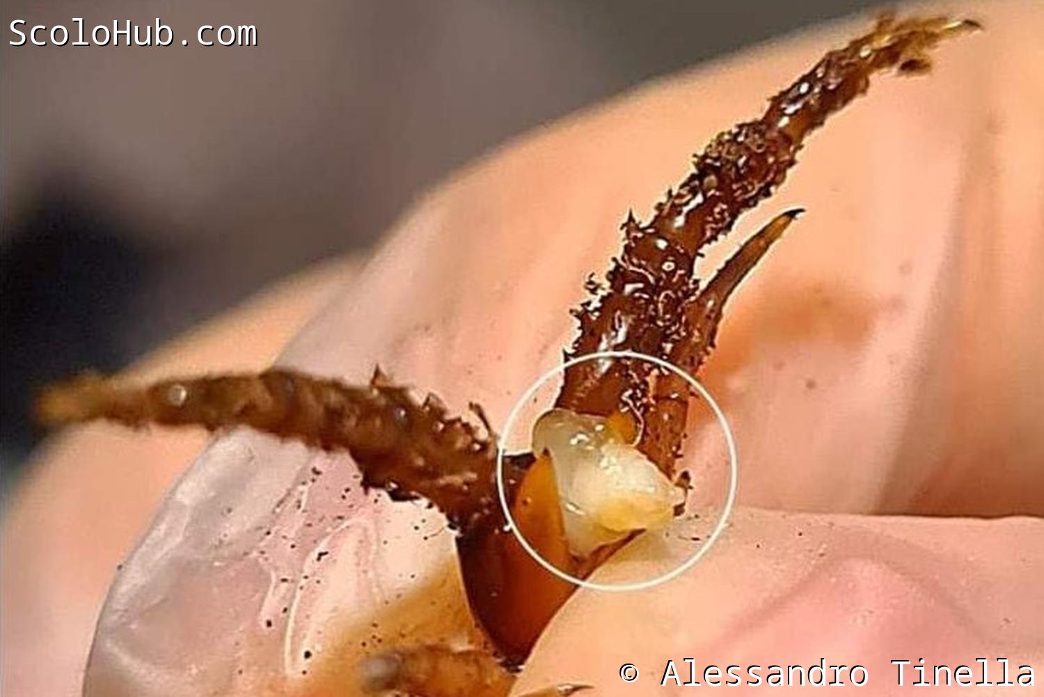 Geschlechtsbestimmung von Skolopendern sollten nur erfahrene Halter durchführen! Die Betäubung von Skolopendern ist nicht trivial, und beim herausdrücken der Geschlechtsorgane kann das Tier verletzt werden, wenn zu viel Druck angewendet wird.