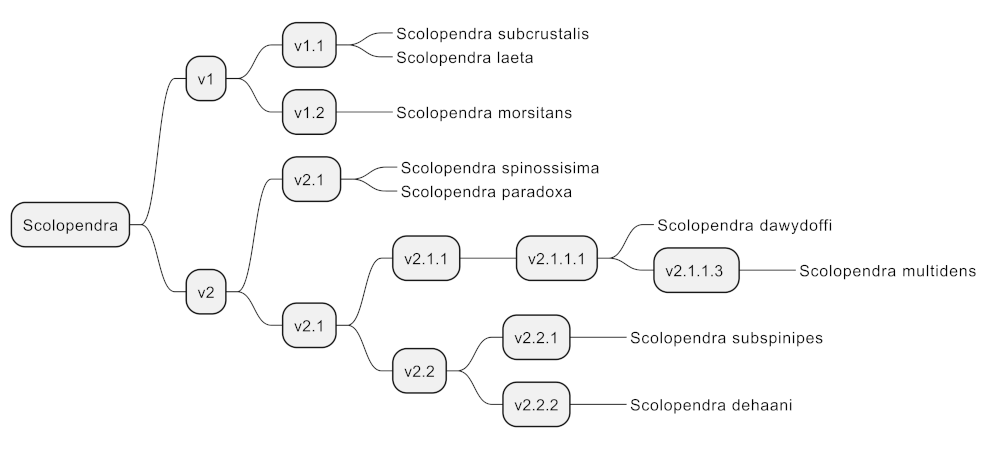 | Scolopendra subspinipes gastroforeata | Scolopendra subspinipes | 2010, Lewis |